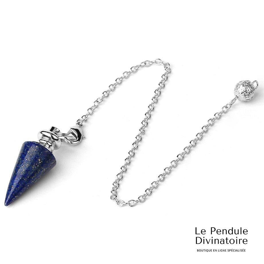 Le bleu profond du pendule cône en lapis lazuli vous aide à apporter une solution à vos problèmes.