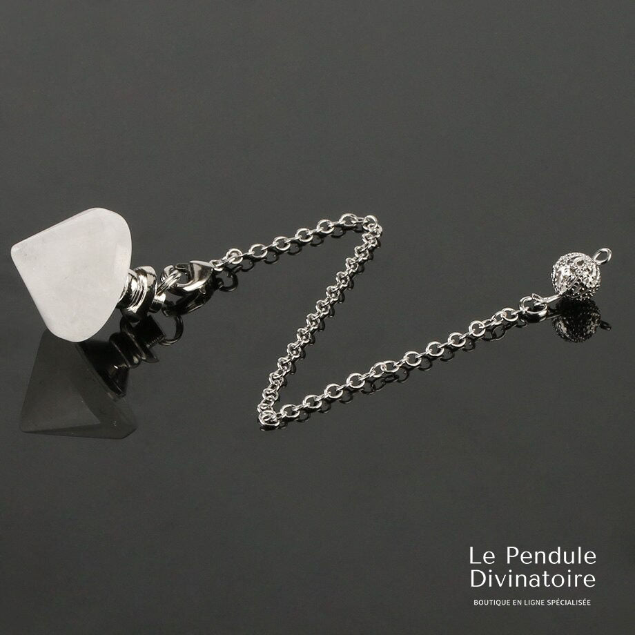 Le cristal de roche utilisé est naturel. C’est une pierre semi-précieuse très appréciée pour ses effets bénéfiques sur l’organisme (voir les effets ci-dessus). Ce pendule est émetteur et récepteur.