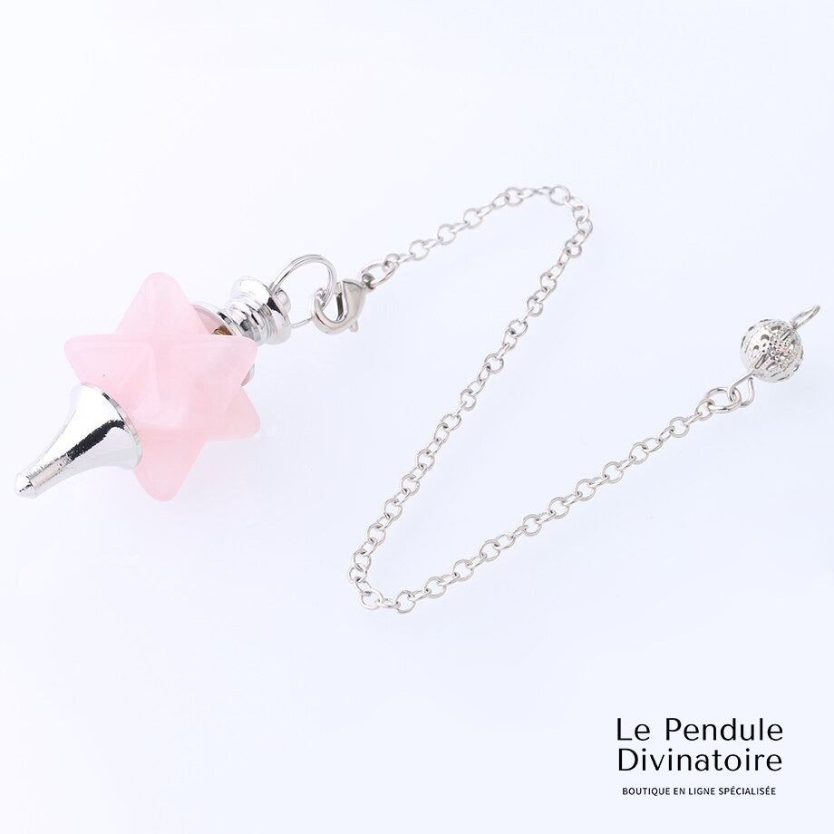 Prenez confiance en vous et développez votre spiritualité avec le pendule merkaba en quartz rose.